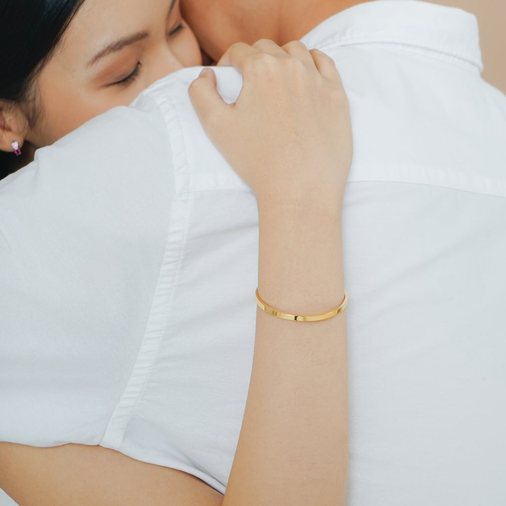 A Made Different Co Signature bangle. This keepsake bangle features a smooth and thin band that is adjustable. Manufactured for longevity to ensure that you get the best wear out of it.