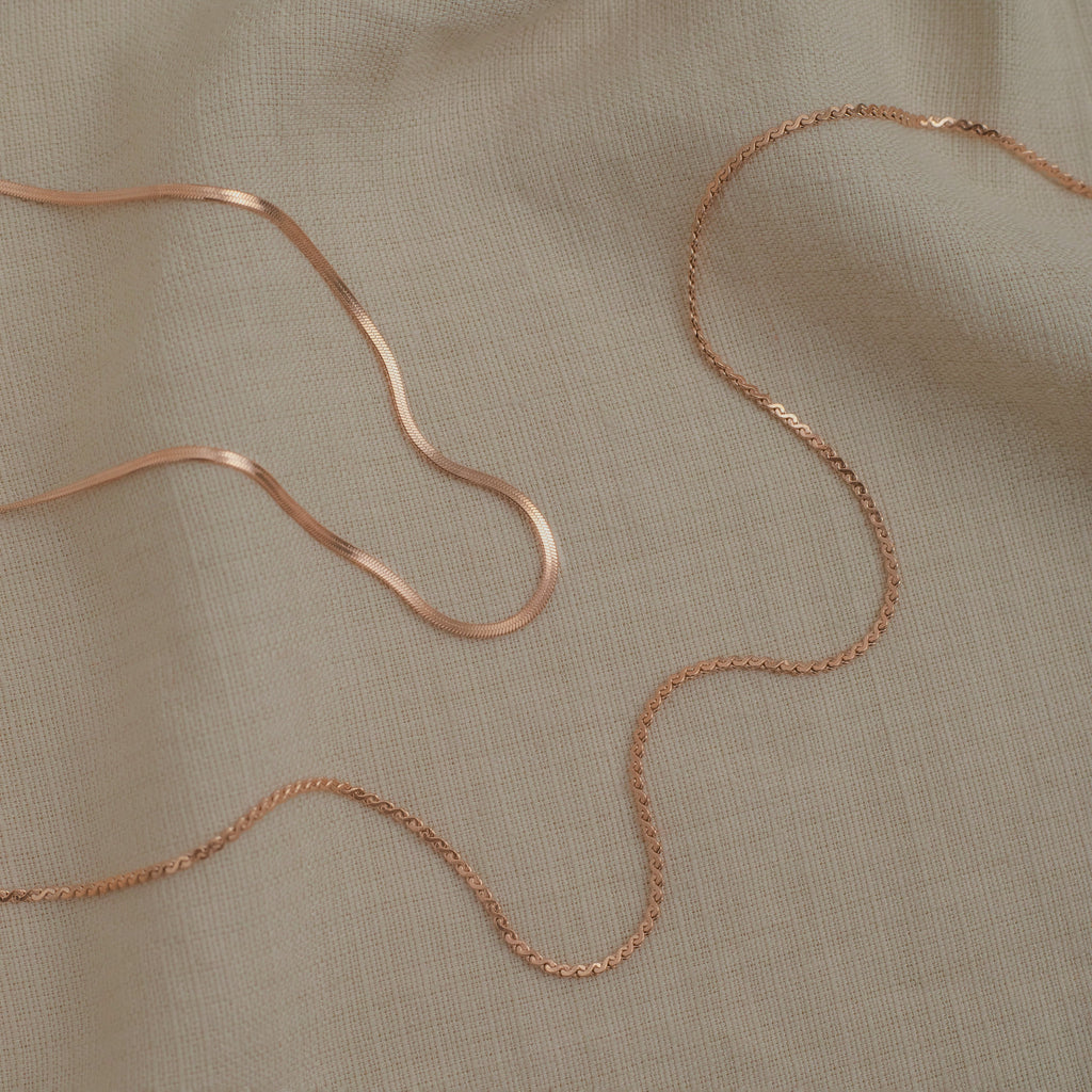 A petite version of the classic herringbone necklace, this chain is made of flattened chain links that contours beautifully to your collarbones, giving off a clean and luxe look.