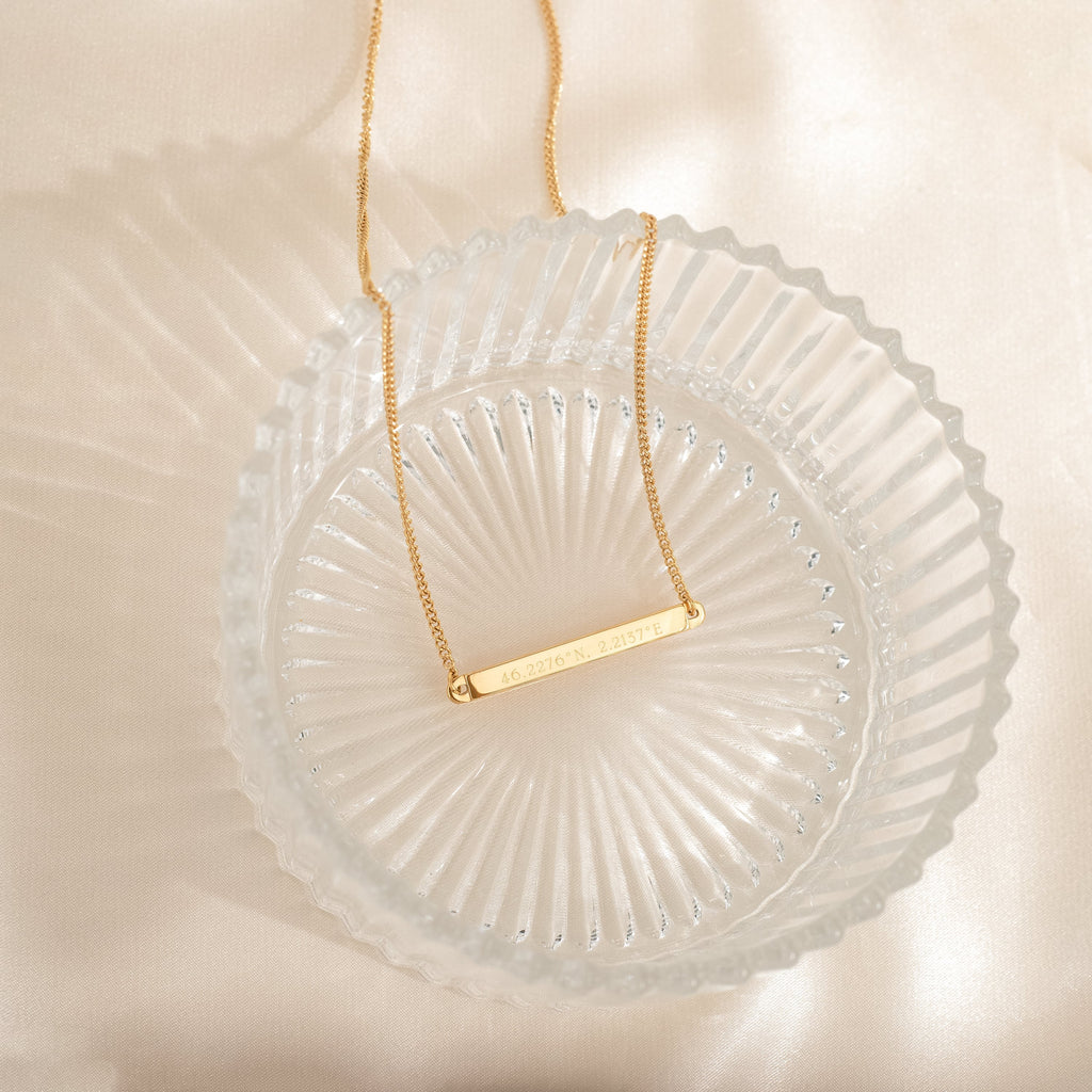 Timeless essentials for a gift to yourself or your loved ones. A classic bar set in the middle of a curb chain for a well balanced look suitable for everyday wear.